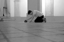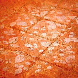 Das Ornament changiert zunächst glänzend. Durch die Nutzung des Raumes wird es durch den haftenden Straßenstaub dunkel.