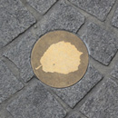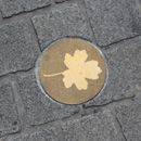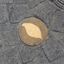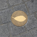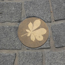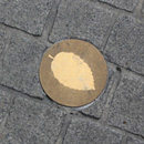 Die Messingplaketten mit Motiven unterschiedlicher Blätter, verlegt im Pflaster des Jenaer Marktplatzes, markieren den Schlenderweg um die Metamorphose der Pflanzen.